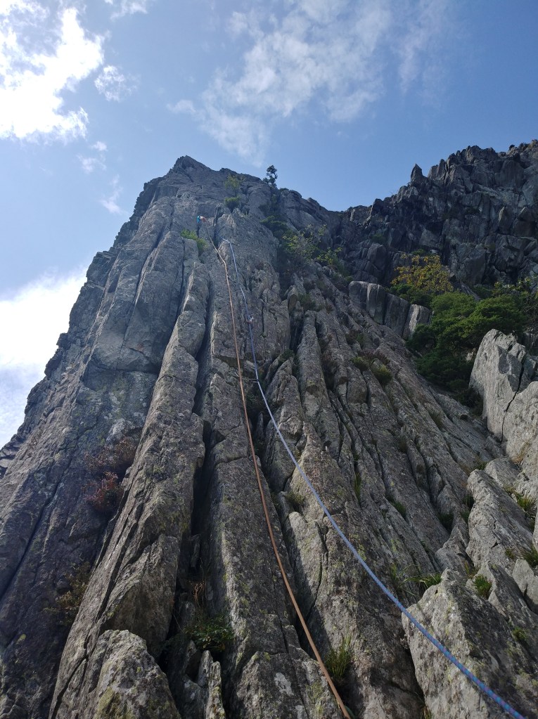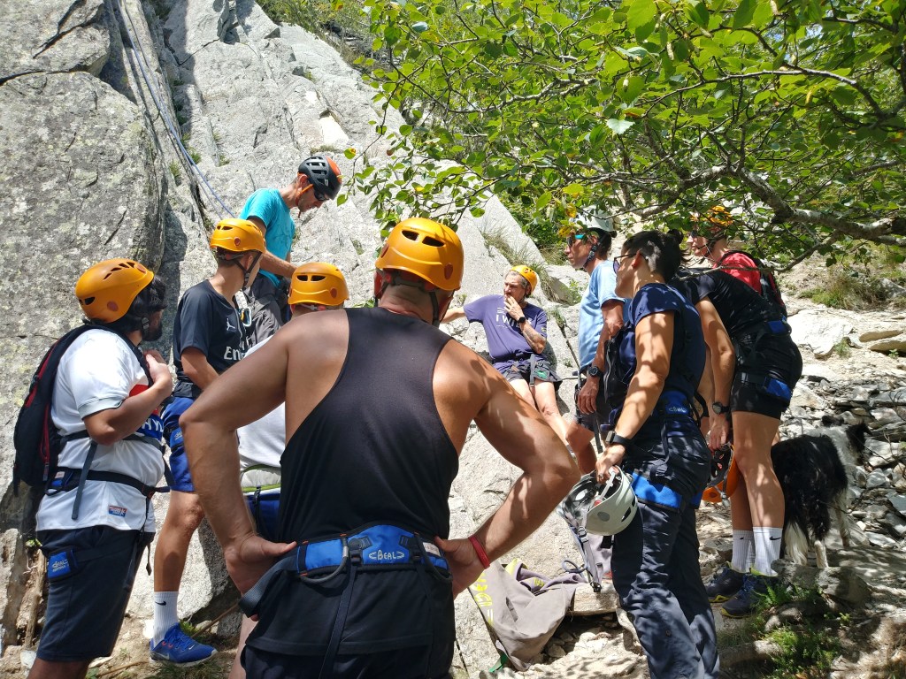 L’autre moment fort de cette semaine et sans aucun doute le temps partagé avec les détenus. Ils étaient quatre en fin de peine et autant de surveillant. C’est un contexte particulier auquel je n’avais jamais été confronté. Antoine Amiot, AMM au sein d’Auvergn’ Attitude connait bien ce public pour avoir travaillé de nombreuses années à son contact. C’est grâce au réseau qu’il a su tisser que les détenus ont accès aujourd’hui à ce type de sortie. Le matin nous avons randonné aux alentours de la Roche Sanadoire et l’après-midi Laurent Granet, moniteur d’escalade, nous a rejoins pour leur faire découvrir ce sport où la confiance en l’autre prend une saveur particulière quand détenus et surveillants doivent s’assurer les uns les autres. C’est à la Roche Tuillère que nous passerons le reste de la journée.