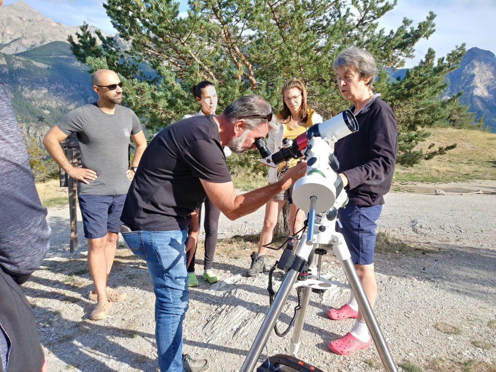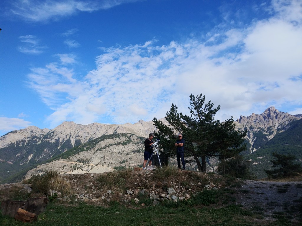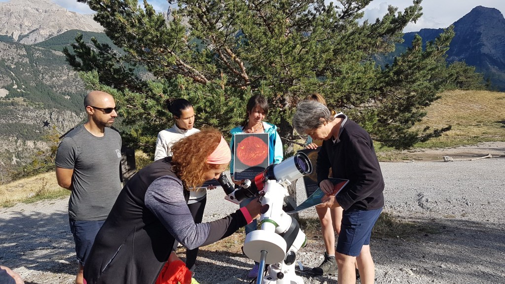 Je vais chercher Isabelle à Lyon et nous prenons la route direction Briançon. Le temps de nous installer au gîte et nous accueillons déjà les premiers participants pour des observations du Soleil.